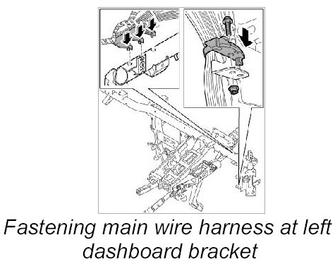 3. Fasten main wire harness at left dashboard bracket.