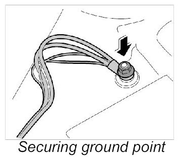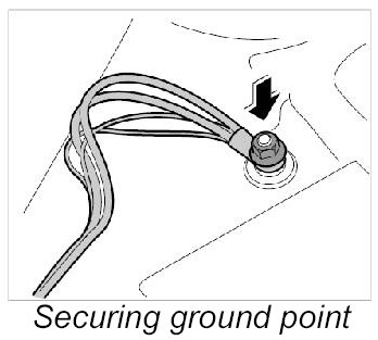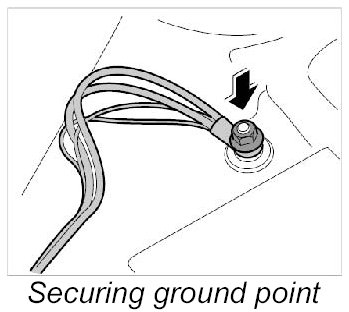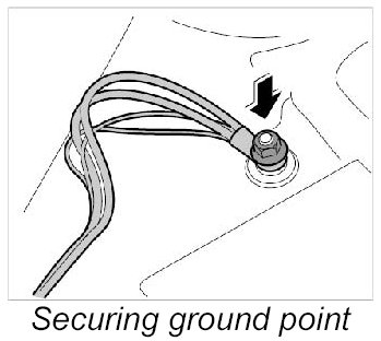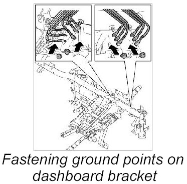 7. Fasten ground points on dashboard bracket.
