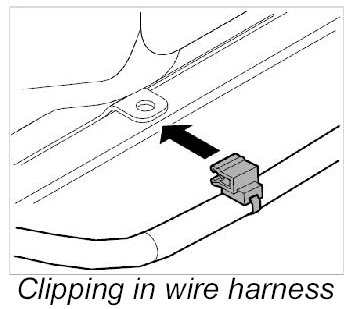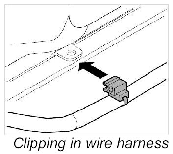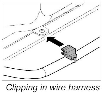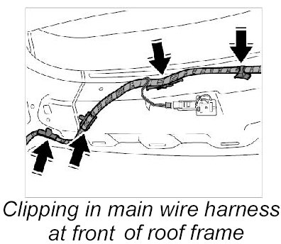 10. Clip in main wire harness at front of roof frame.