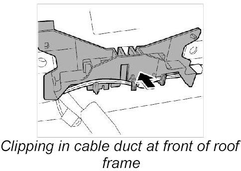 11. Clip in cable duct at front of roof frame.