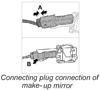12. Connect plug connection of make-up mirror, left and right -100 and 101-.