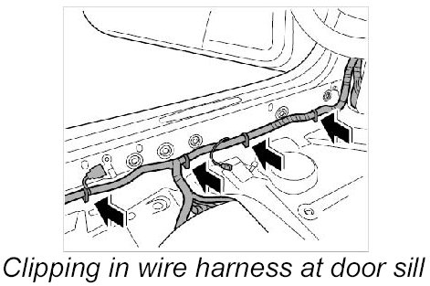 22. Clip in wire harness at door sill.