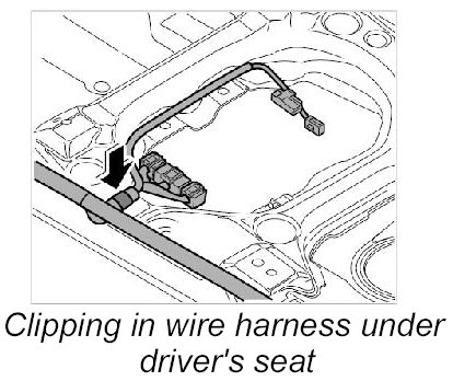 29. Push on connectors for airbag sensor, centre left and right -58 and 59- until it is felt to engage.
