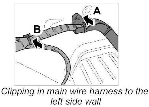 31. 2. Clip in main wire harness to the left side wall.