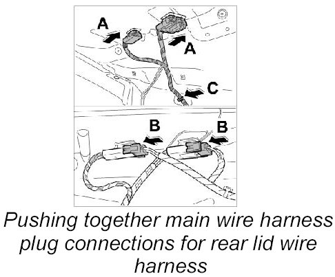37. 2. Release and disconnect main wire harness plug connections for rear lid wire harness.