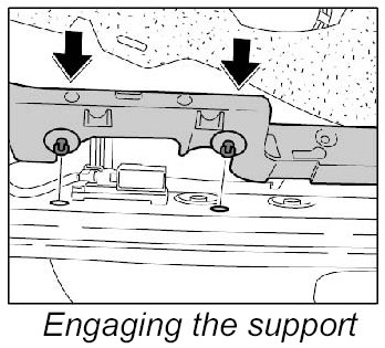 1. 2. Press in the locating peg -1- of the support and check it is seated correctly.