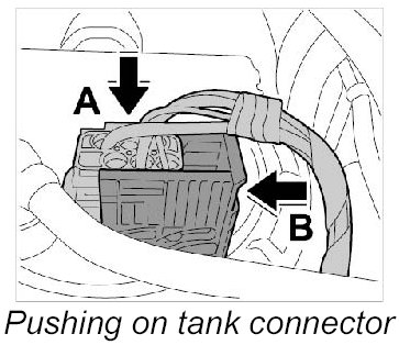 20. Push on connector for filler flap switching element -21- until it is felt to engage.