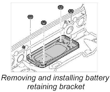 5. Position battery retaining bracket and secure with the four fastening nuts. Tightening torque: 10 Nm (7.5 ft. lbs.)