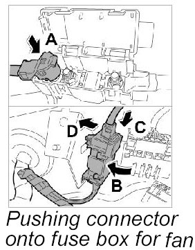 33. 1. Push connector onto fuse box for fan -Arrow A-.