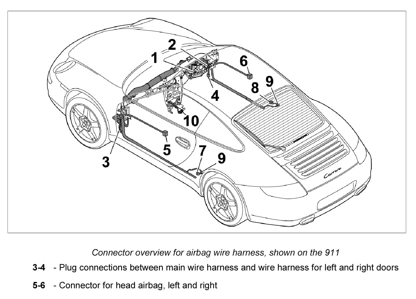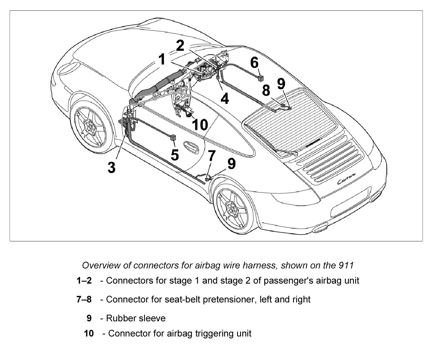 2. 2. Connector for seat-belt pretensioner, left -7- and right -8-.