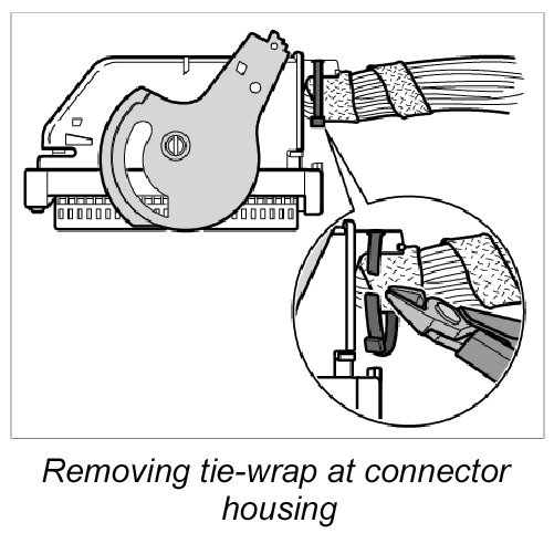 6. Cut and remove tie-wraps for fixing the wire harness to the connector housing.