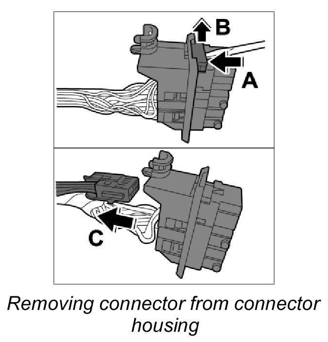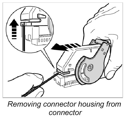 5. Release connector housing with a small screwdriver, lift upwards and remove from connector.