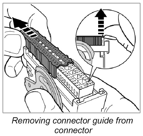 6. Lift connector guide and remove from connector.