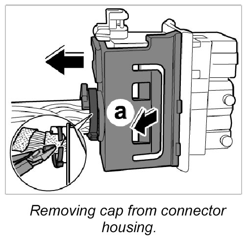 7. Release cap on both sides -Arrow a- and remove from the connector housing.