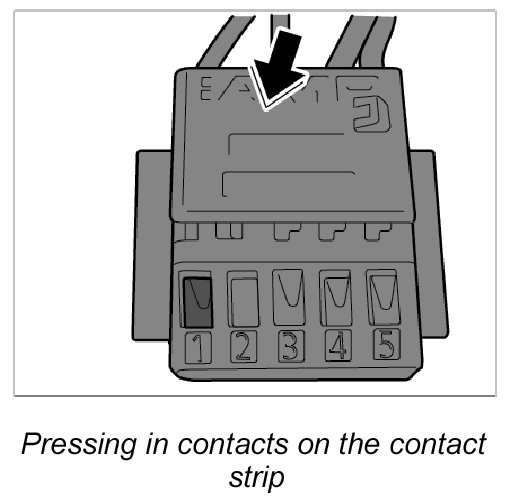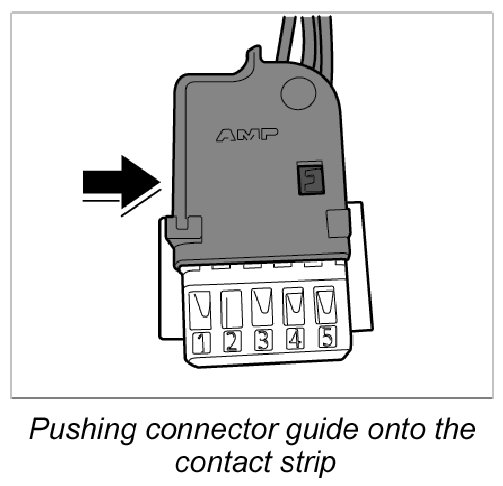 20. Push connector guide onto the contact strip until it is felt to engage.