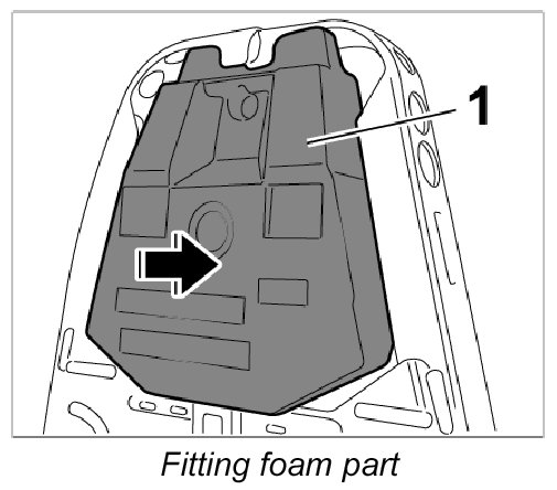 - Make sure that the hoses are not pinched. Insert hoses exactly into the cut-outs on the foam part.