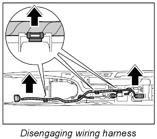 2. Disengage retaining clips with wiring harness on centre console and remove the harness.