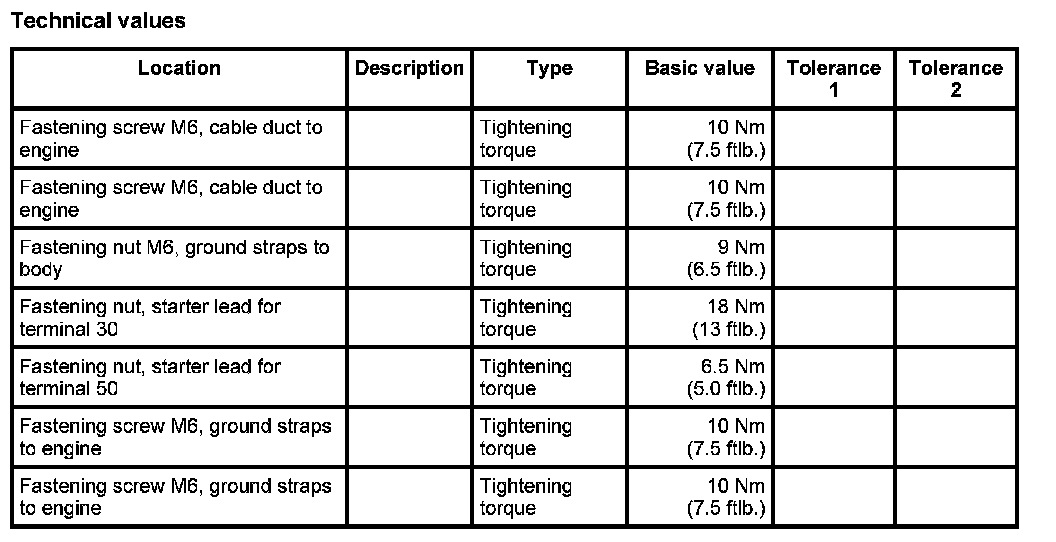 23. Position starter lead for terminal 30 and terminal 50 -30 and 31- and secure with fastening nut. Tightening torque: 18 Nm (13 ft. lbs.) Tightening torque: 6.5 Nm (5.0 ft. lbs.)