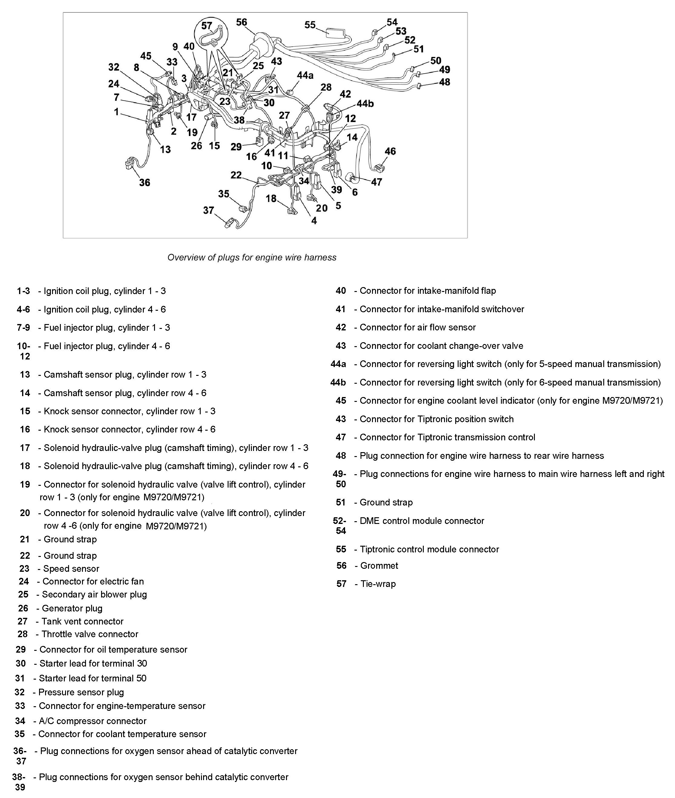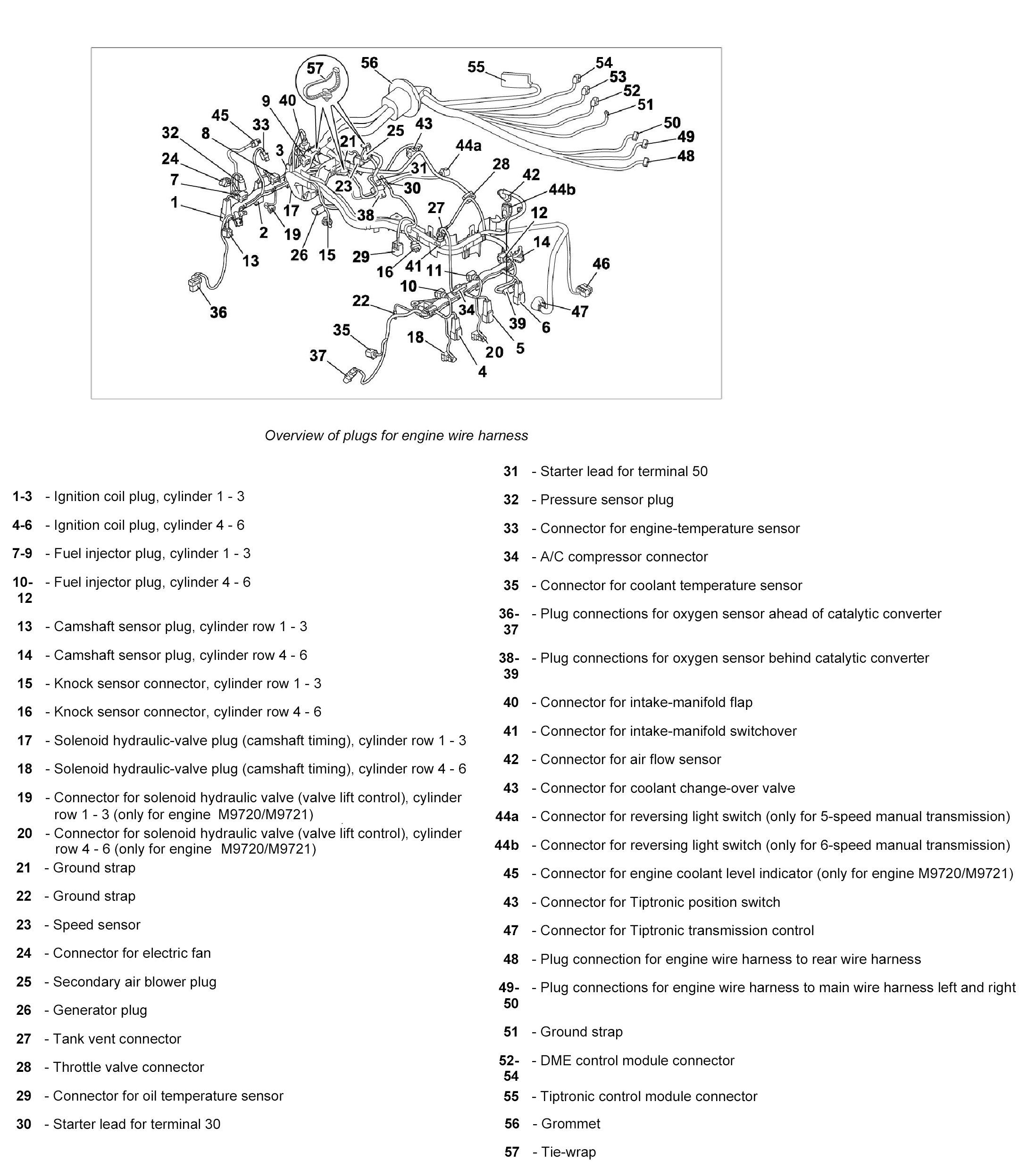 30. Remove grommet -56- and pull through the engine wire harness in direction of engine compartment.
