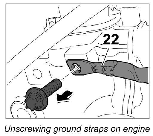 6. Unscrew ground straps -22-.
