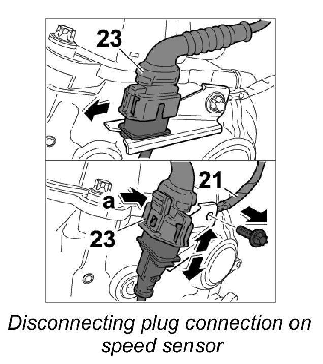 7. Disconnect plug connection on speed sensor -23- and unscrew ground straps -21-.
