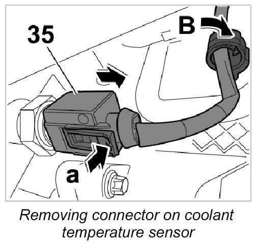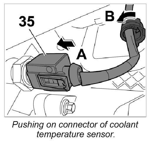 20. 1. Push on connector of coolant temperature sensor -35- -Arrow A- until it is felt to engage.