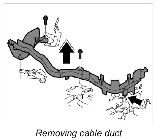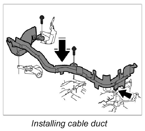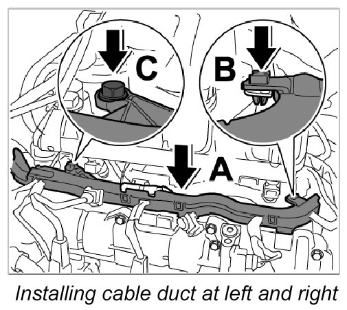 3. 2. Secure cable duct left and right with fastening screw -Arrow C-. Tightening torque: 10 Nm (7.5 ft. lbs.)