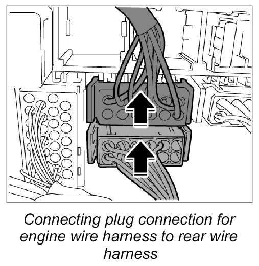 10. 1. Connect plug connections for engine wire harness to main wire harness left and right until they are felt to engage.