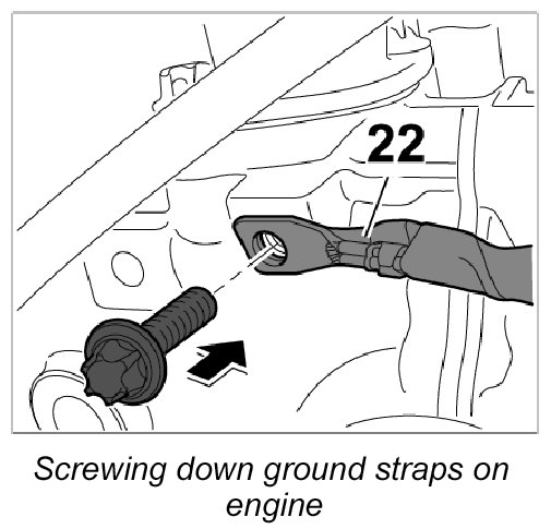 29. 1. Position ground straps -22- and screw down with the fastening screw. Tightening torque: 10 Nm (7.5 ft. lbs.)