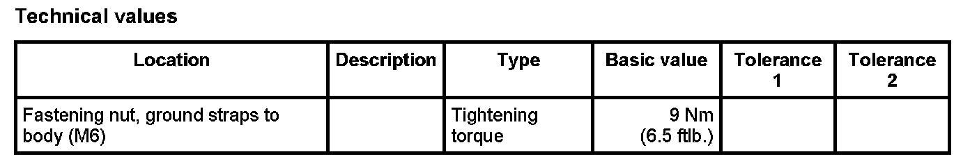 19. 1. Connect ground straps and screw down fastening nut. Tightening torque: 9 Nm (6.5 ft. lbs.)