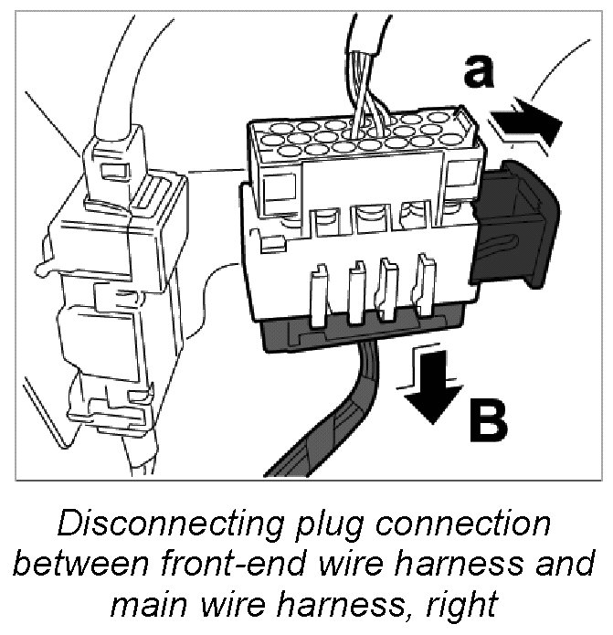 1. 1. Release plug connection between front-end wire harness and main wire harness, right -arrow a- and disconnect -arrow B-.