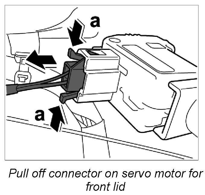 13. Release and pull off connector on servo motor for front lid release -16-.
