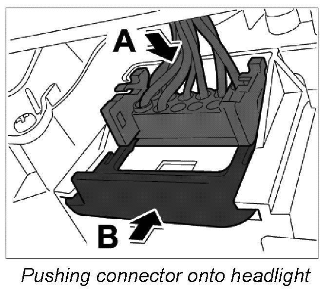 18. 1. Push connector onto headlight at left and right -arrow A-.