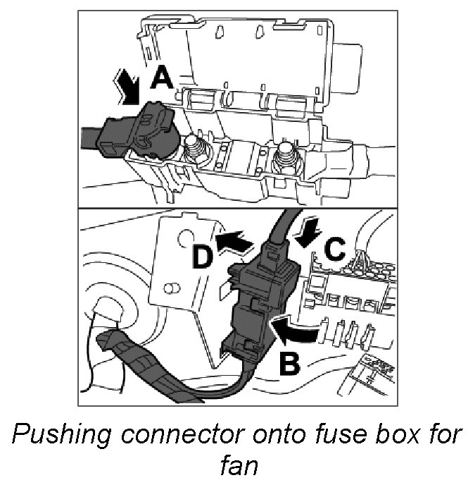 20. 1. Push connector onto fuse box for fan -arrow A-.