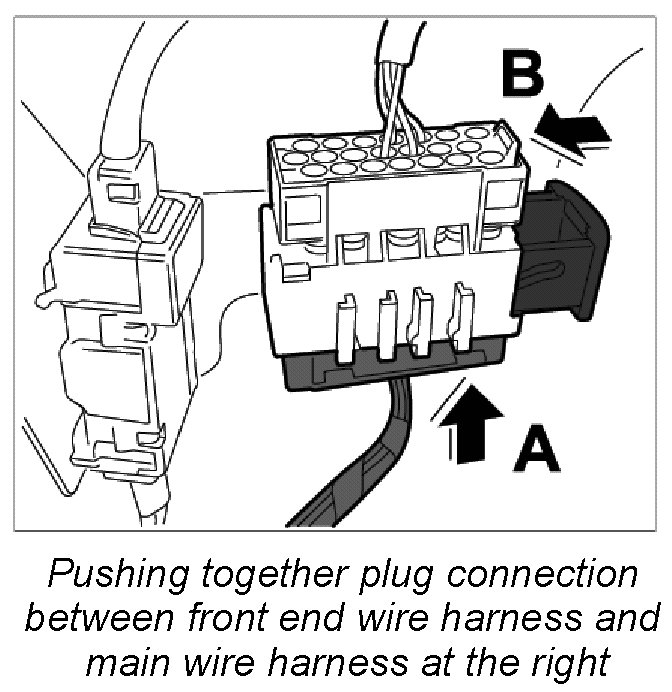 4. Push together plug connection for front-end wire harness to main wire harness, left -20- until it engages securely.