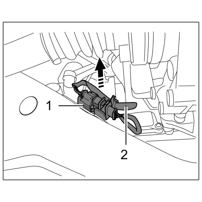 1. Unclip cable plug -1- and connecting cable -2- (black) from the support. Release and disconnect cable plug -1-.