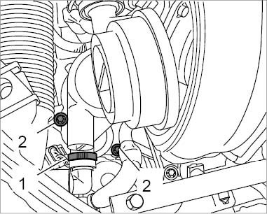 3. Fit and tighten two new Torx screws (M6 x 20) -2-. -> Tightening torque: 7.5 ftlb.