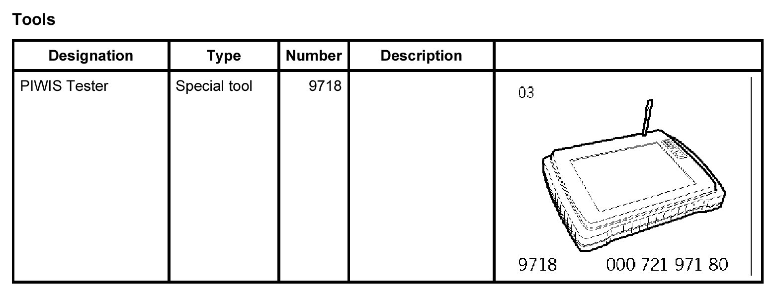 - If possible, before the control unit is removed and replaced, a read-out of the vehicle data should be obtained from the Porsche PIWIS Tester 9718 System Tester.
