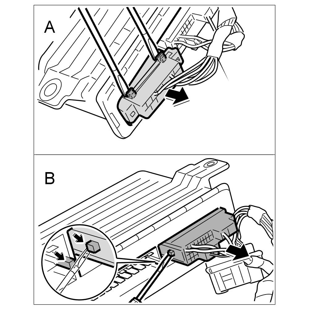 4. -B- Carefully lever the connector away from the control unit using one screwdriver.