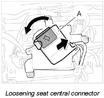 1. Turn seat central connector -A- at AWS holder to the left and remove from the holder.