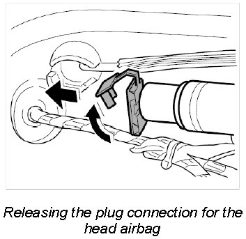 1. With a screwdriver, carefully release the locking element of the plug connection for the airbag unit and remove the plug from the airbag module.
