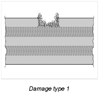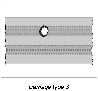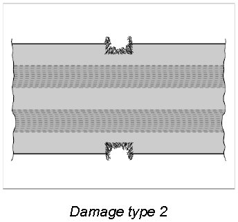 1.1. If one of the damage types shown below -damage type 1, 2- is found on an vehicle involved in an accident, the seat belt and belt buckle must be replaced.