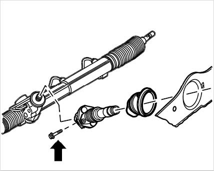 7. Loosen fastening screw -Arrow- and pull off steering shaft (universal joint) on the steering gear.