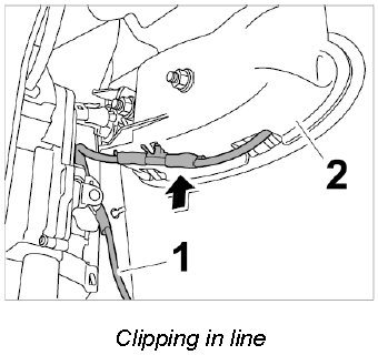 1. On the bottom part of door opener -2- clip in the electrical line -1-.