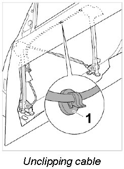2. Unclip cable at retaining clip -1-.