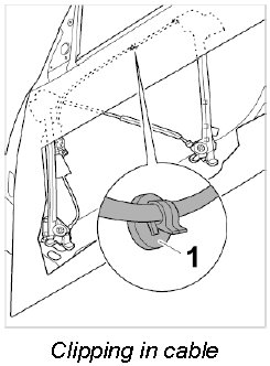 4. Clip in cable at retaining clip -1-.