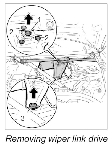 3. Carefully raise the wiper link and remove the wiper motor downwards.