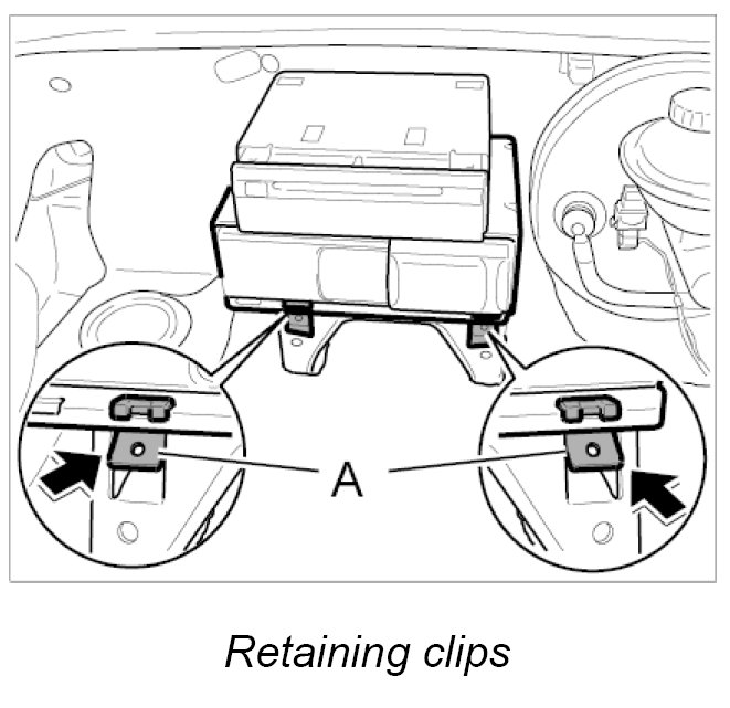 1. Replace retaining clips for CD changer retaining frame.