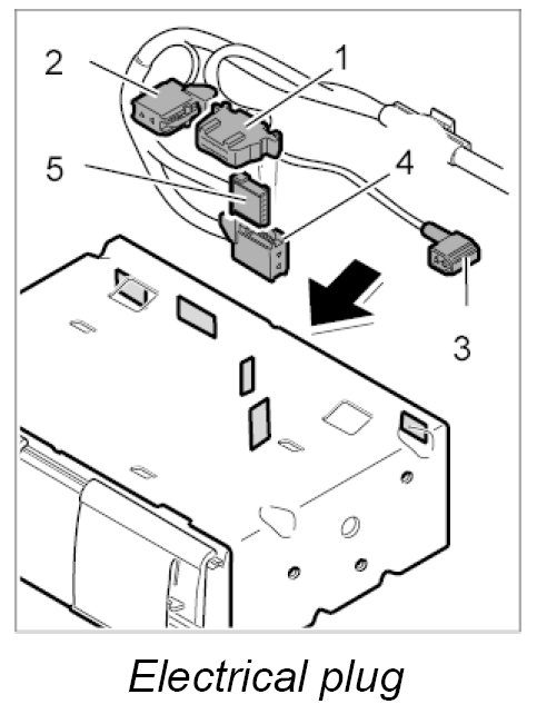 3. Plug the electrical connectors -4, 5- into the CD changer until they are felt to engage.