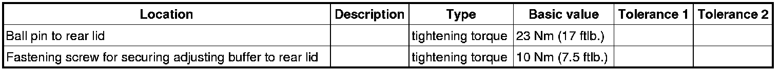 2.2. Position adjusting buffer -2- in direction of arrow and tighten fastening screw -1-. => tightening torque: 10 Nm (7.5 ftlb.)